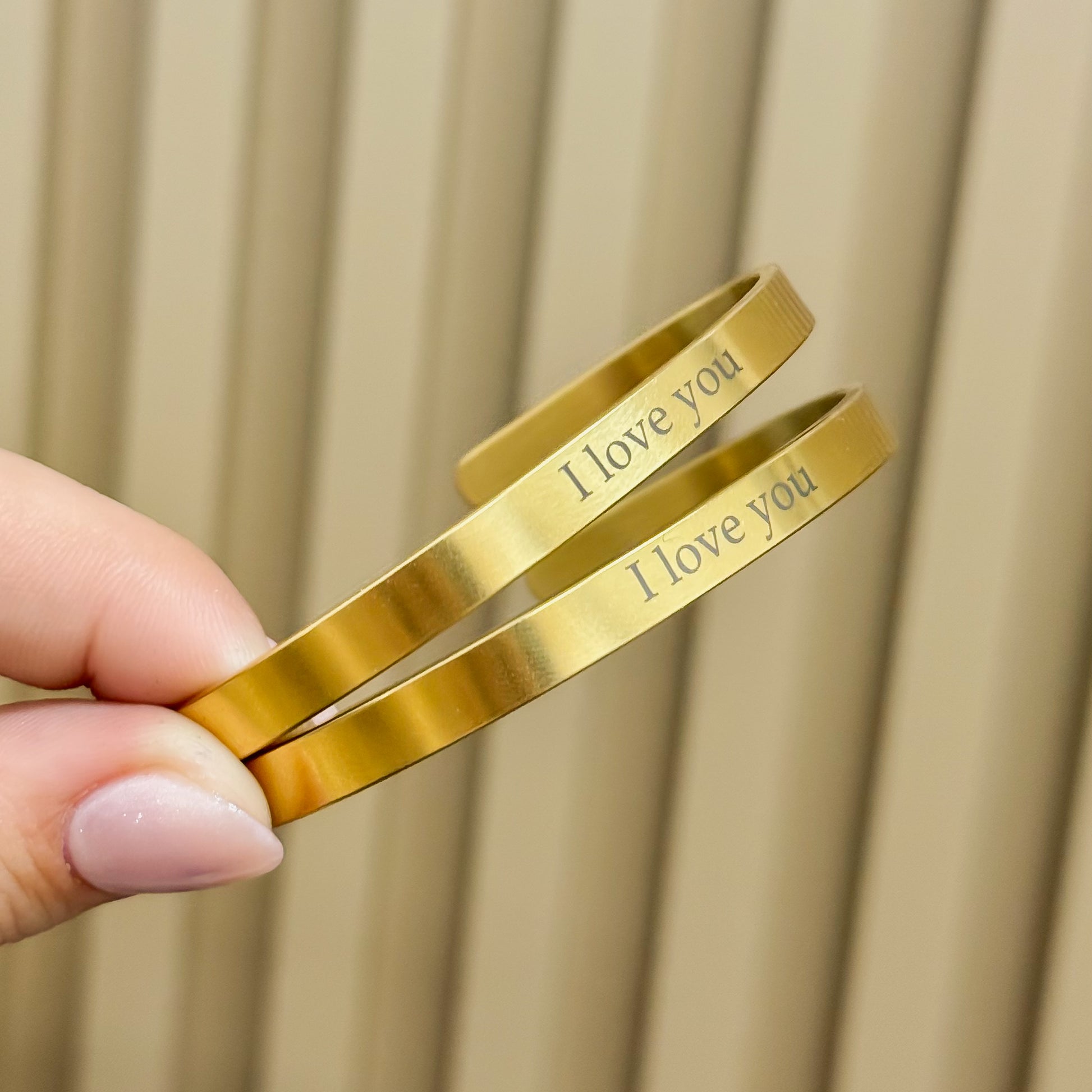 Nuestro brazalete es una excelente manera de hacer que tus recuerdos perduren para siempre. Puedes personalizarlo con una frase, nombre, iniciales o fecha especial, lo que la convierte en una joya única y significativa. Este brazalete seguramente se convertirá en una pieza imprescindible en tu colección, ideal para agregar un toque personalizado a tus looks o como un regalo lleno de significado para alguien especial.